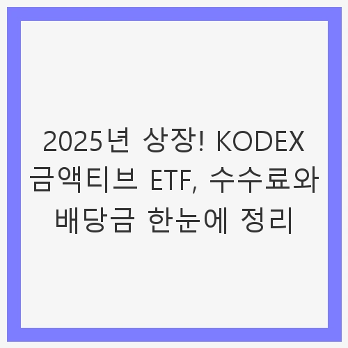 👉2025년 상장! KODEX 금액티브 ETF, 수수료와 배당금 한눈에 정리 바로가기