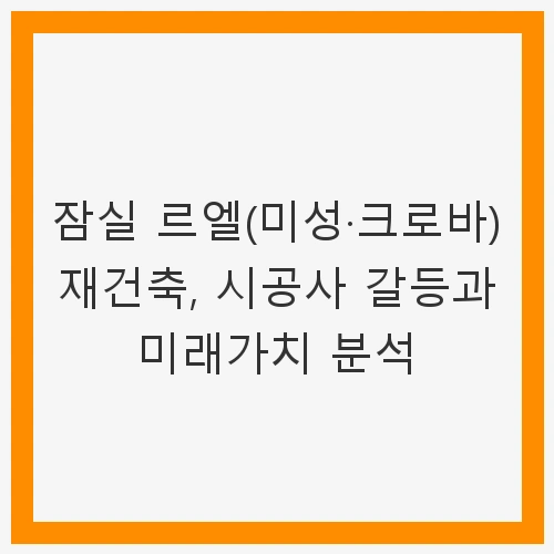 잠실 르엘(미성·크로바) 재건축 단지는 서울 송파구의 핵심 지역에 자리잡고 있으며, 최근 시공사 갈등과 관련된 이슈로 많은 주목을 받고 있습니다. 이 재건축 사업은 지역 내에서 상당한 투자 가치를 품고 있는 것으로 평가받고 있으며, 향후 분양과 관련된 일정과 가격이 큰 관심을 끌고 있습니다. 특히 후분양 방식을 채택한 이번 프로젝트는 지역 주택 시장에 미칠 영향과 함께, 청약자들에게도 새로운 기회를 제공할 것으로 예상됩니다. 이번 글에서는 잠실 르엘 재건축의 배경과 시공사 갈등, 그리고 미래 가치를 분석하여 이 프로젝트가 어떤 의미를 지니는지 살펴보겠습니다.