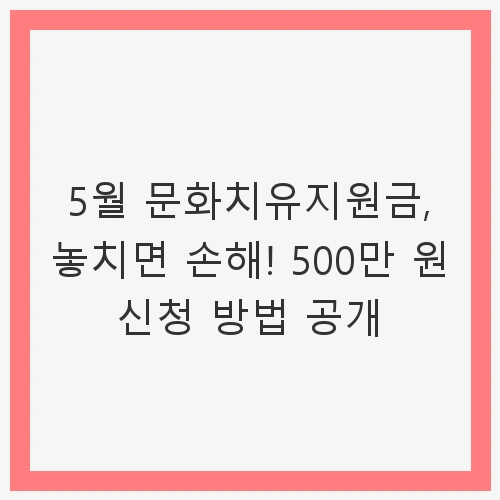 👉5월 문화치유지원금, 놓치면 손해! 500만 원 신청 방법 공개 바로보기