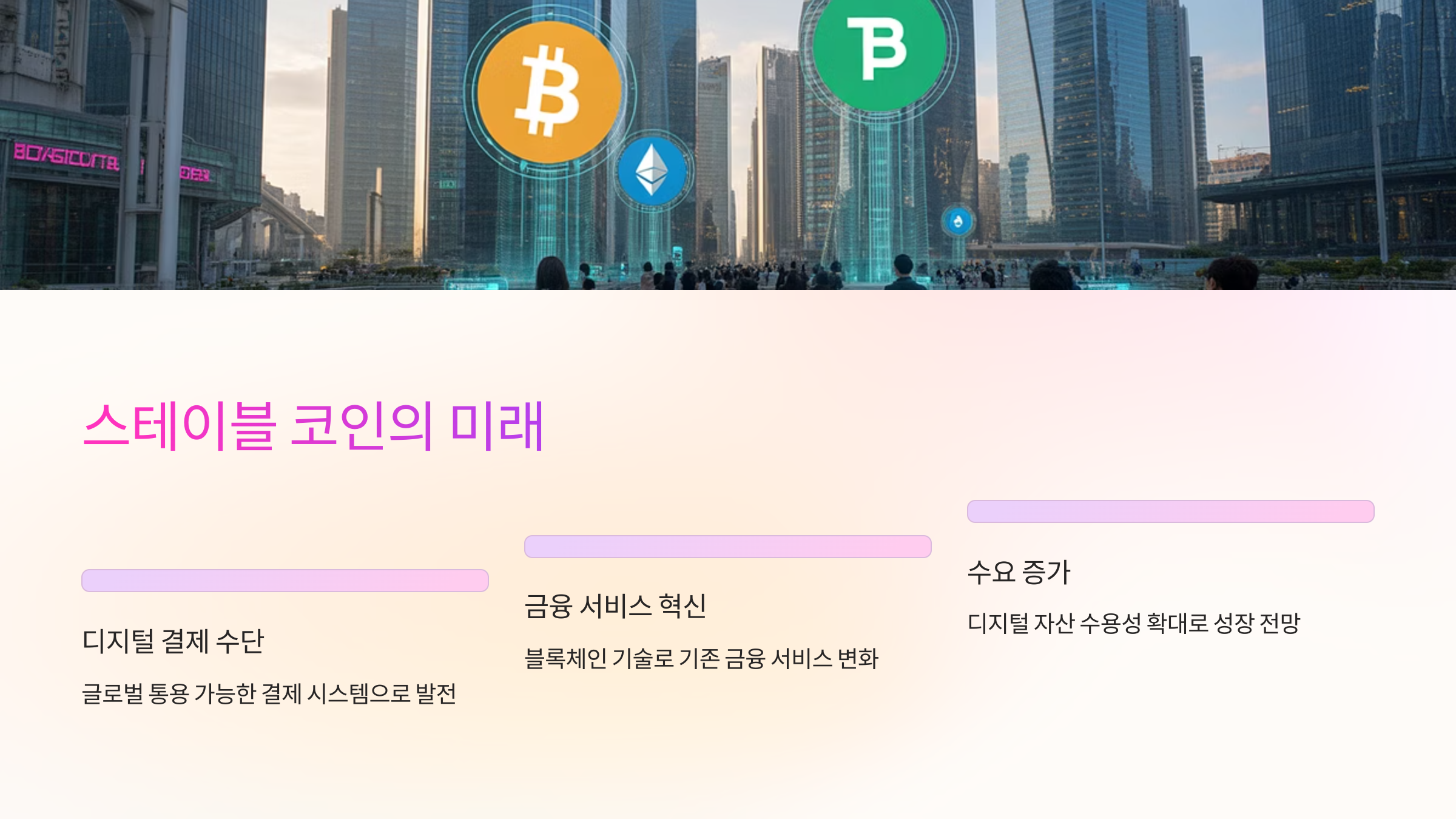 - 디지털 자산의 수용성: 스테이블 코인은 전통적인 금융 시스템과의 연결성을 높여줍니다.
