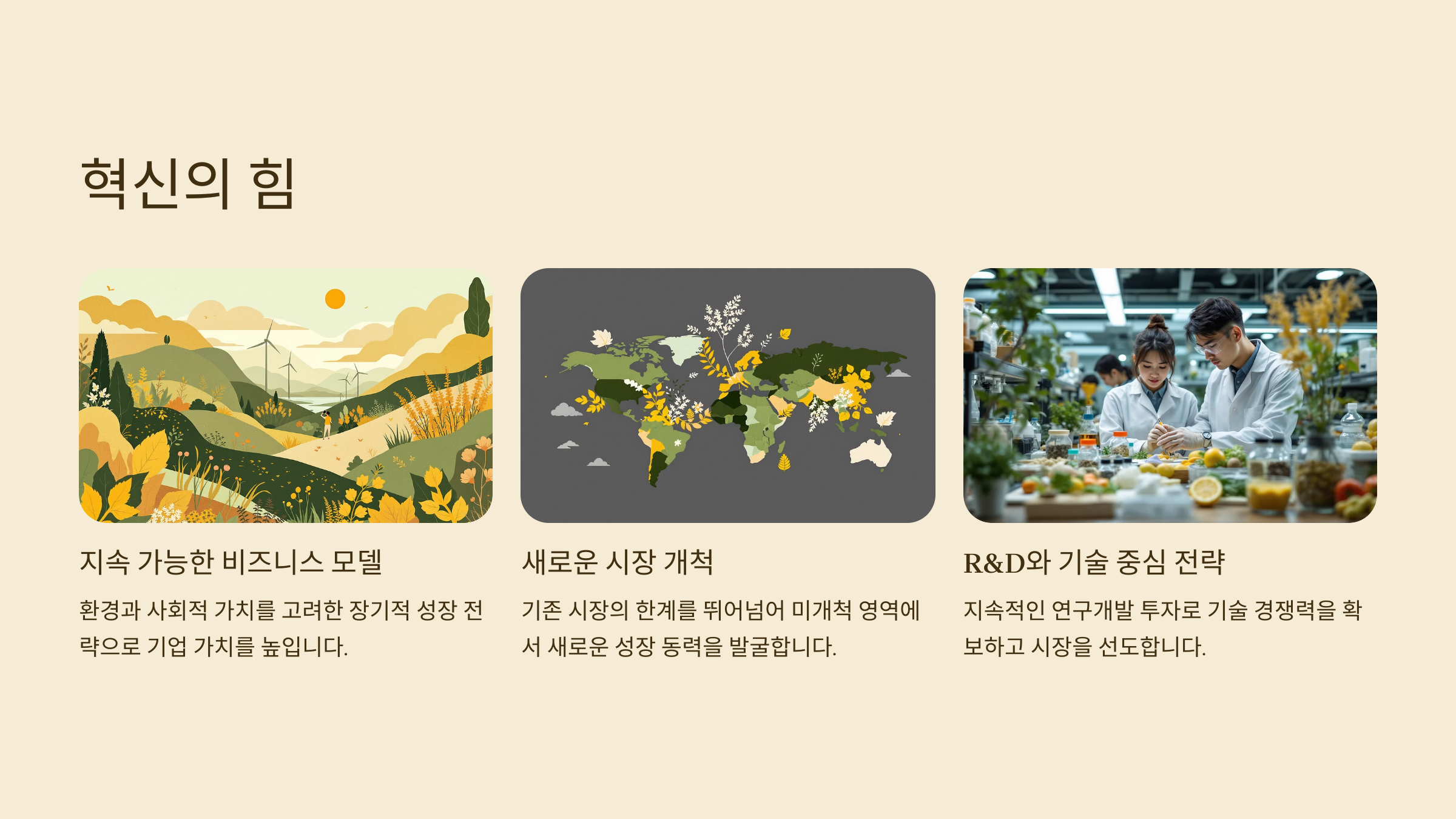 - 새로운 시장을 개척하려는 시도 자체가 부족하다