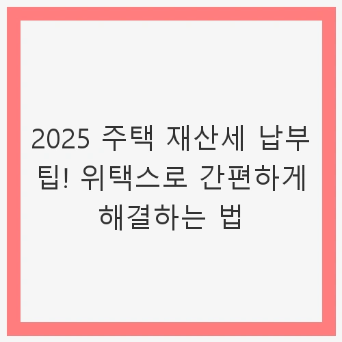 👉2025 주택 재산세 납부 팁! 위택스로 간편하게 해결하는 법 확인하기